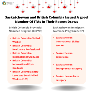 British Columbia, Manitoba & Saskatchewan During the last week, the government of Canada issued various ITAs for specific provinces i.e. British Columbia, Manitoba & Saskatchewan. All Canadian provinces and territories (except Quebec and Nunavut) have their PNP. Through these programs, interested candidates can be invited to apply for a provincial...