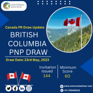 British Columbia PNP Draw British Columbia has announced yet another draw on 23rd May 2023. This time, the total number of ITAs issued reached 144 eligible candidates from various categories of the British Columbia Provincial Nominee Program. It was the fourth PNP draw from British Columbia in the month of...