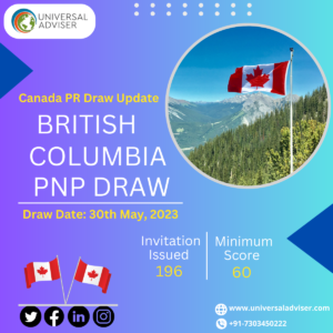 British Columbia PNP Draw British Columbia held its latest Provincial Nominee Program draw on 30th May 2023. It was the fifth and last PNP draw of May and invited 196 eligible candidates from 4 different streams of the BC PNP. The latest draw was a Skills Immigration draw and had...