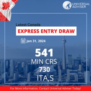Express Entry General Draw Immigration, Refugees, and Citizenship Canada (IRCC) has recently issued invitations to apply (ITAs) in its most recent Express Entry draw on 31st January, extending offers to 730 candidates in a general draw. To qualify, candidates needed a minimum Comprehensive Ranking System (CRS) score of 541.This draw...
