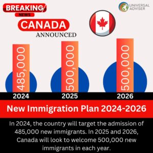 Keeping Consistency in Immigration Targets Canada has recently disclosed its Immigration Levels Plan for the upcoming years, maintaining its current immigration targets. In 2024, the goal is to admit 485,000 new immigrants, with an increase to 500,000 annually in 2025 and 2026. Check Your Eligibility Today Steadfast Targets from the...