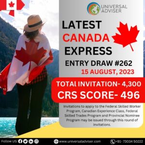 Latest Express Entry Draw On August 15 the immigration department issued 4,300 invitations to apply (ITAs) to candidates in an all-program Express Entry draw. The minimum Comprehensive Ranking Score (CRS) was 496. Check Your Eligibility Today! Details of the draw: Total ITAs issued: 4,300 Type of draw: No Program Specified...