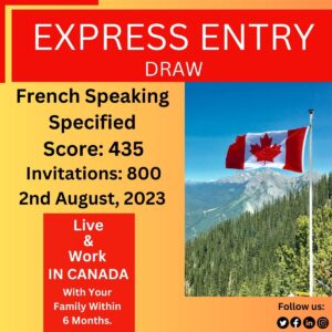 Latest Express Entry Draw Ottawa, August 3, 2023 – In a significant move to welcome skilled immigrants with proficiency in the French language, Immigration, Refugees, and Citizenship Canada (IRCC) held a targeted category-based Express Entry draw on August 2nd, 2023. A total of 800 candidates received Invitations to Apply (ITAs)...