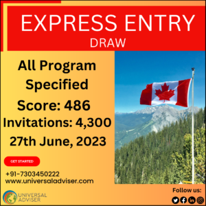 Latest Express Entry Draw In the latest Express Entry draw of 2023, Immigration, Refugees and Citizenship Canada (IRCC) took the initiative to invite 4,300 candidates from various programs. To be eligible for consideration, candidates were required to attain a minimum Comprehensive Ranking System (CRS) score of 486 Following the draw...