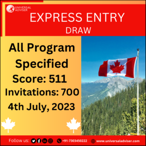 Express Entry Draw In a recent Express Entry draw held on July 4, 2023, the Immigration Refugees and Citizenship Canada (IRCC) extended invitations to 700 candidates. This draw, open to all programs, required applicants to achieve a minimum Comprehensive Ranking System (CRS) score of 511. Interestingly, this draw is a...