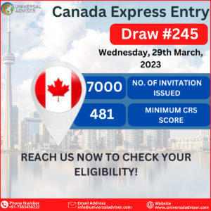 Latest All-Program Express Entry Draw, CRS Score Drops to 481 March 29, 2023, saw another all-program Express Entry draw of the year. This draw happened for the third consecutive week this year.The draw invited a total of 7,000 eligible candidates and granted them the Invitation to Apply for Canadian Permanent...