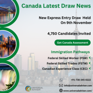 Latest Express Entry Draw on 9th November – 4,750 Candidates Invited On November 9, Canada conducted its most current all-program Express Entry draw. Since all program draws began on July 6, this is the tenth in a row. A minimum Comprehensive Ranking System (CRS) score of 494 was required for...