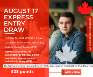 Canada issued invitations to 2,250 candidates through Express Entry draw Canada has issued new express entry draw of August with the 525 crs (Comprehensive Ranking System) score. IRCC comes with good news to not categorize this draw. Hence, skilled workers or international students can apply for Canada PR Visa can...