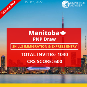 Manitoba PNP Draw Results out – 1030 LAAs Issued The Manitoba Provincial Nominee Program held its latest draw on the 15th of December 2022 and issued a total of 1030 Letters of Advice to Apply for the PR Visa. The minimum ranking score in the current draw was 600 CRS...